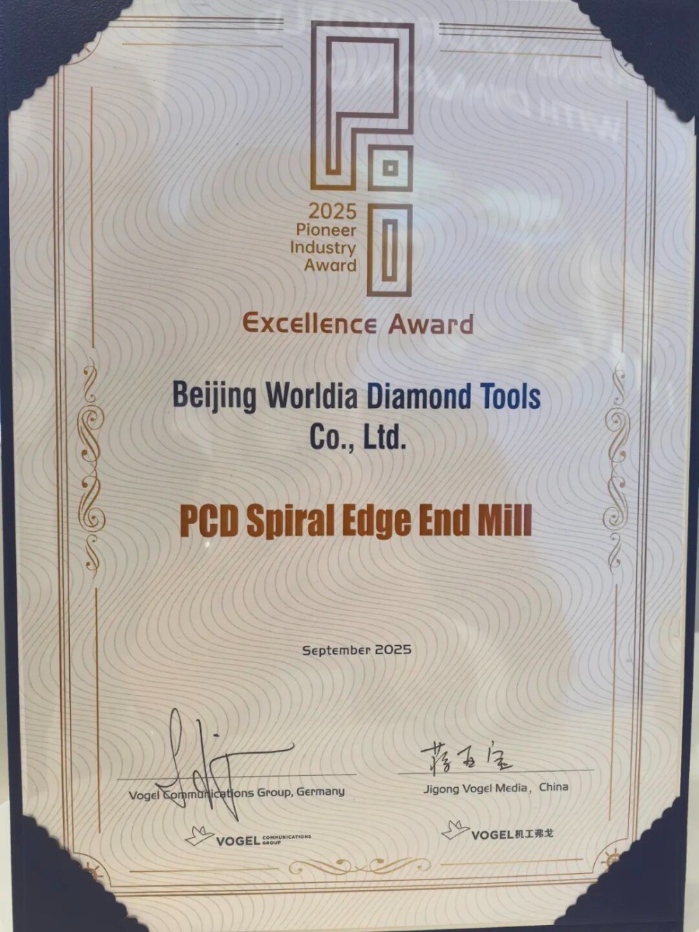 2025年9月22日,在德國(guó)漢諾威EMO展會(huì)期間舉辦的“2025弗戈出海先鋒獎(jiǎng)”頒獎(jiǎng)典禮上,沃爾德憑借創(chuàng)新產(chǎn)品PCD螺旋刃銑刀榮獲該獎(jiǎng)項(xiàng)。