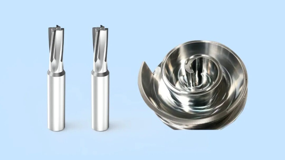 使用常規(guī)PCD復(fù)合片做成的PCD立銑刀,前刀面是直的,與合金螺旋刃銑刀相比并不是真正的螺旋曲面。該產(chǎn)品通過(guò)創(chuàng)新的工藝,將平整的前刀面做出了螺旋曲面,螺旋升角可以根據(jù)具體要求單獨(dú)定制,真正實(shí)現(xiàn)了PCD銑刀是螺旋刃的刃部結(jié)構(gòu)。